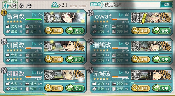 鳥海改lv.96 20.3(3)*2 水觀 司令部