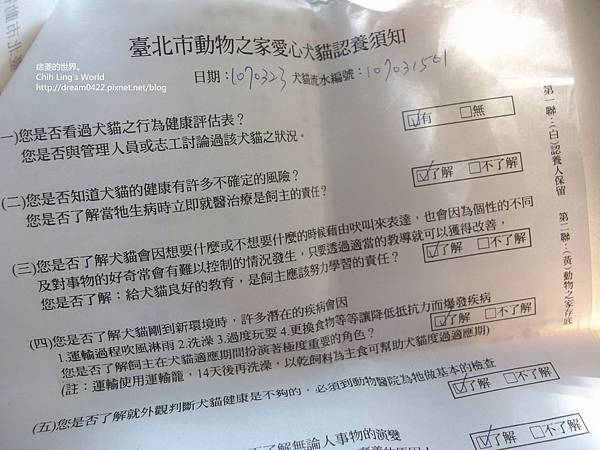 另外還有一張寵物登記/轉讓/補發申請書但我沒拍