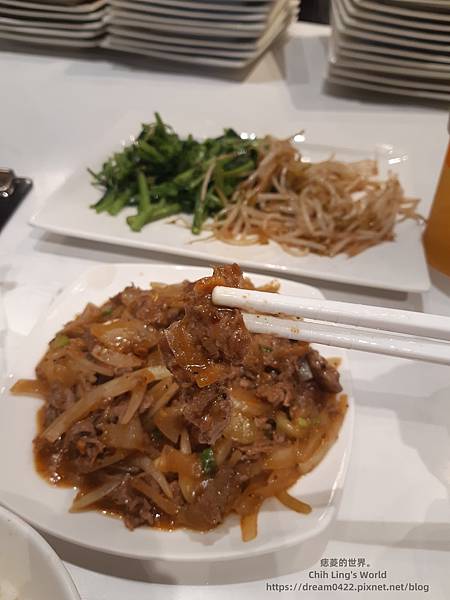店員在點餐時特別說明炒牛肉片偏碎,如圖所示,還真的滿碎的