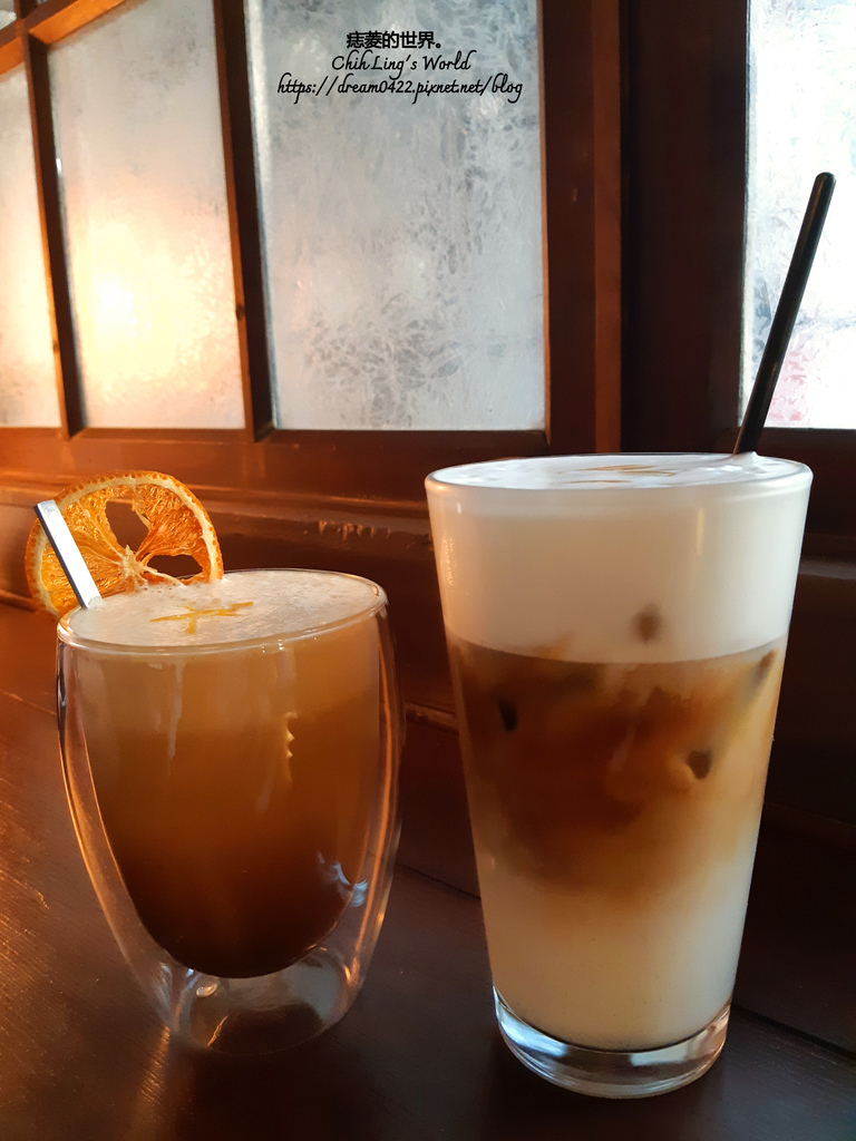 🔺橙香咖啡(左)/拿鐵咖啡(右)