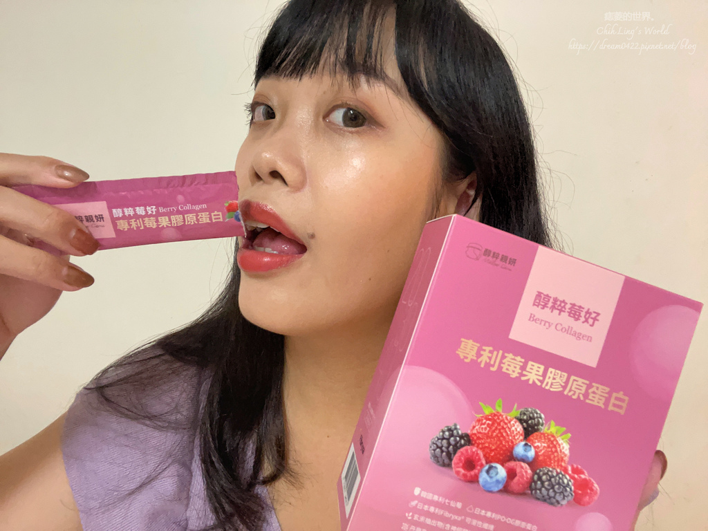 但醇粹親妍 專利莓果膠原蛋白只有滿滿的酸甜莓果味,可以很順利地服用