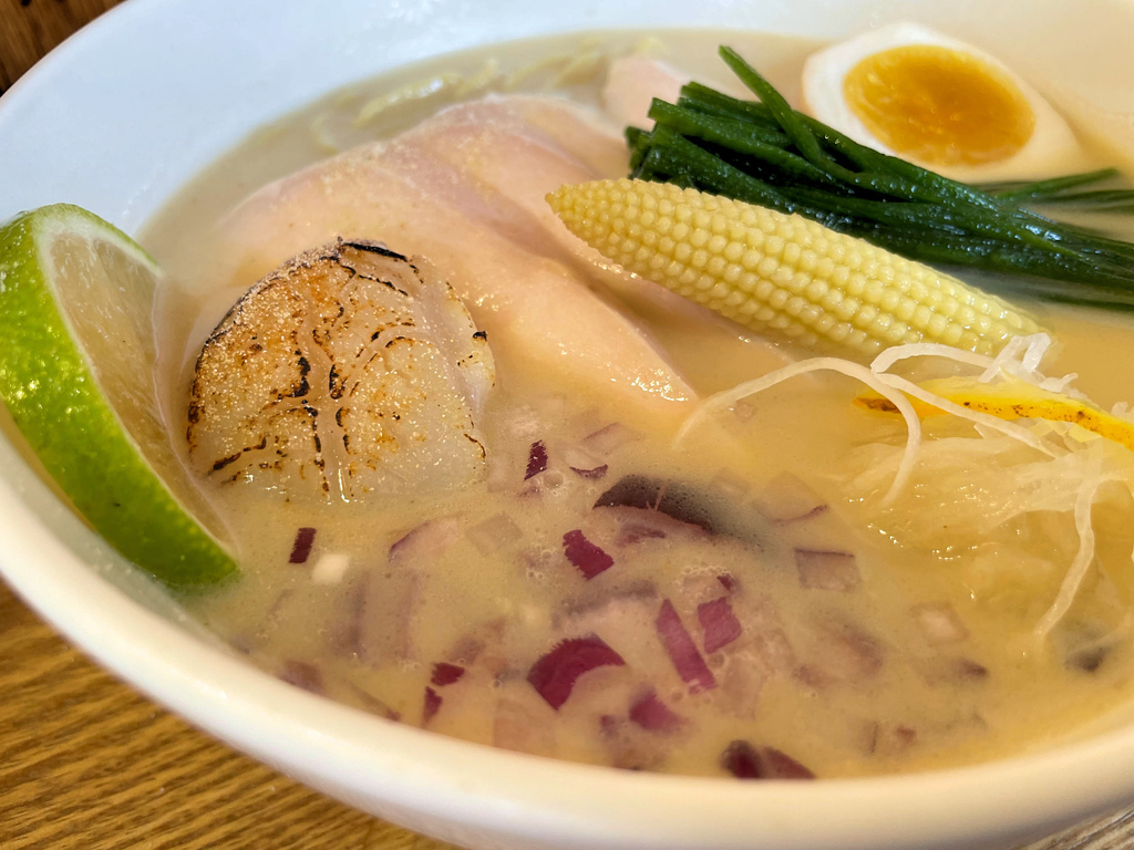 干貝我每次去都會加一顆,表面稍微炙燒過,裡頭軟嫩帶著鮮味,提高了整碗拉麵的高級度。
