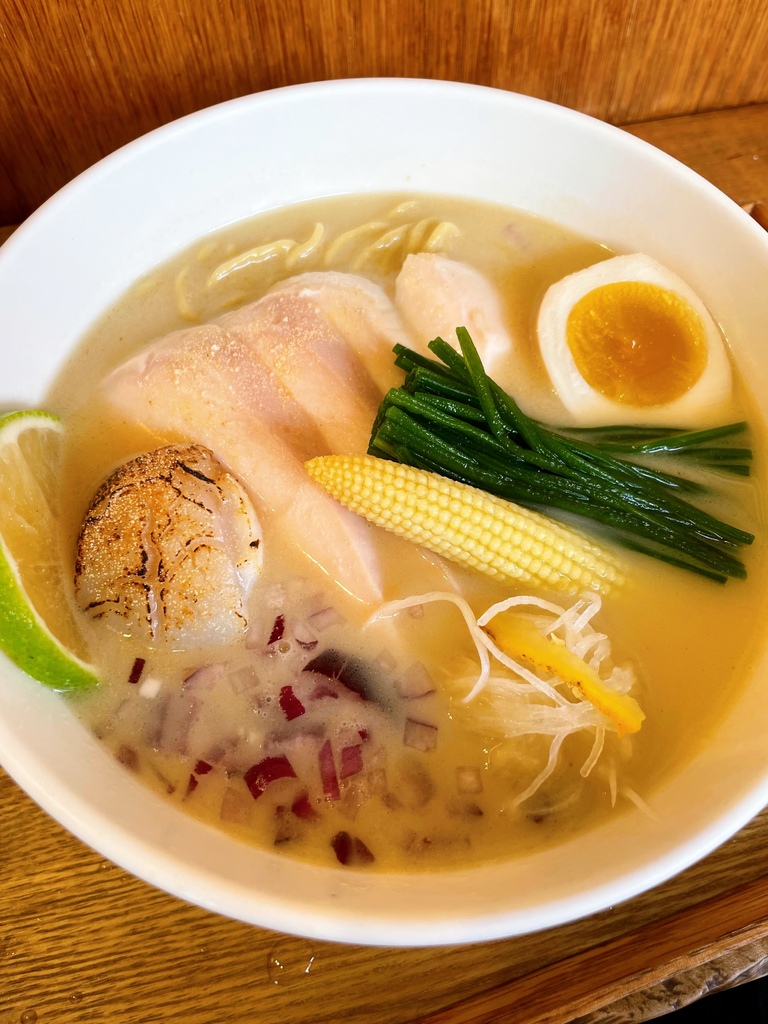 🥢薩索雞白湯拉麵 260元 / 干貝(顆) 40元