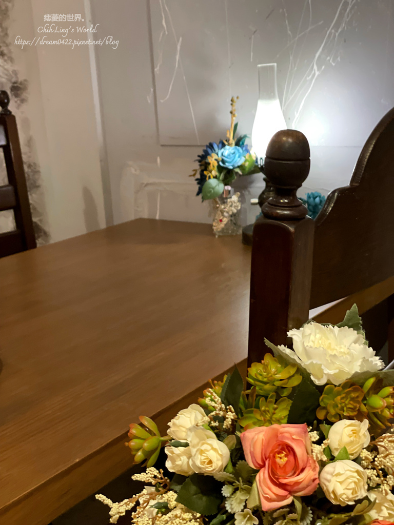 推開紅色店門走上二樓,迎接的是充滿各式藝術品布置及歐洲風情的裝潢,完全不像身處在台灣
